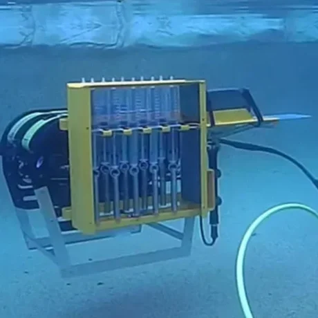 AUS-ROV mechatronics department successfully developed and utilised a remote activated water sampling device in order to capture samples at depth. The trigger mechanism releases two spring loaded 100mL syringes per activation and the system can hold up to 10 syringes per outing. AUS-ROV has proven this system effective in the field and can can integrate the system with USBL Navigation for GPS and depth sensing for georeferencing of sample take locations.